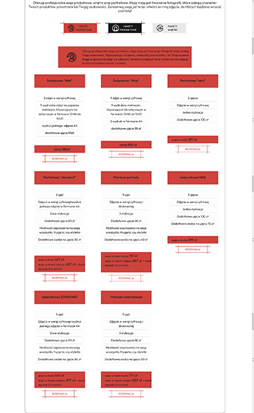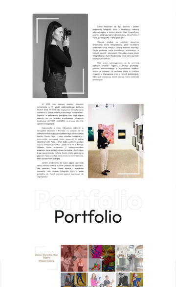 Galerie zdjęć zostały zaprojektowane w formie mozaiki, która nie tylko prezentuje prace w harmonijnym układzie, ale także pozwala użytkownikom na intuicyjne przeglądanie portfolio. Każda kategoria fotografii została starannie wyróżniona, aby podkreślić różnorodność oferty i artystyczną jakość zdjęć.