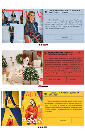 Na stronie głównej użytkowników wita duży animowany slider, który eksponuje najważniejsze informacje i wybrane fotografie w zachwycający sposób. Przejścia między slajdami dodają dynamiki i pozwalają od razu poczuć unikalny styl marki.