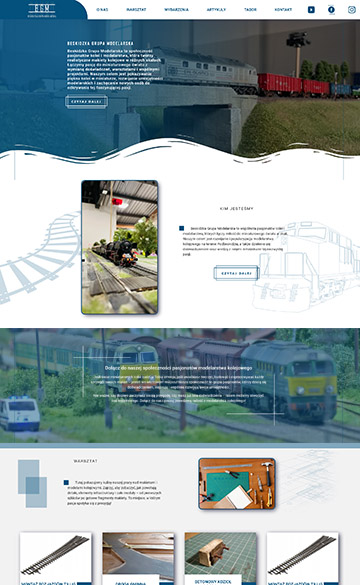 Strona BGM od razu przykuwa uwagę dzięki eleganckiemu, minimalistycznemu logo, które reprezentuje zarówno klasyczne lokomotywy, jak i nowoczesny warsztat modelarski. Identyfikacja wizualna odzwierciedla pasję grupy i jej profesjonalizm – co buduje zaufanie i pokazuje, że to nie amatorskie hobby, ale poważna społeczność modelarska.